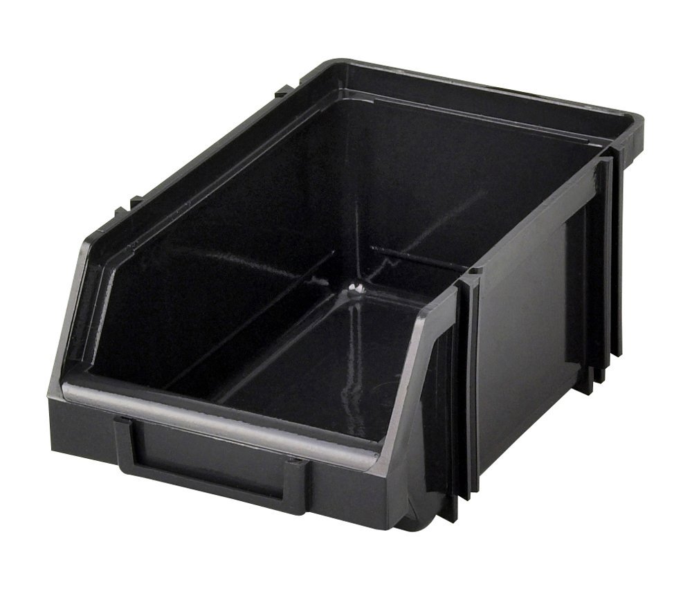 Pojemnik z tworzywa sztucznego Modulbox 1.1, wysokość 75, szerokość 110, głębokość 165 mm. Pudełka pasują do siebie. Kolor czarny. pełny opis i parametry