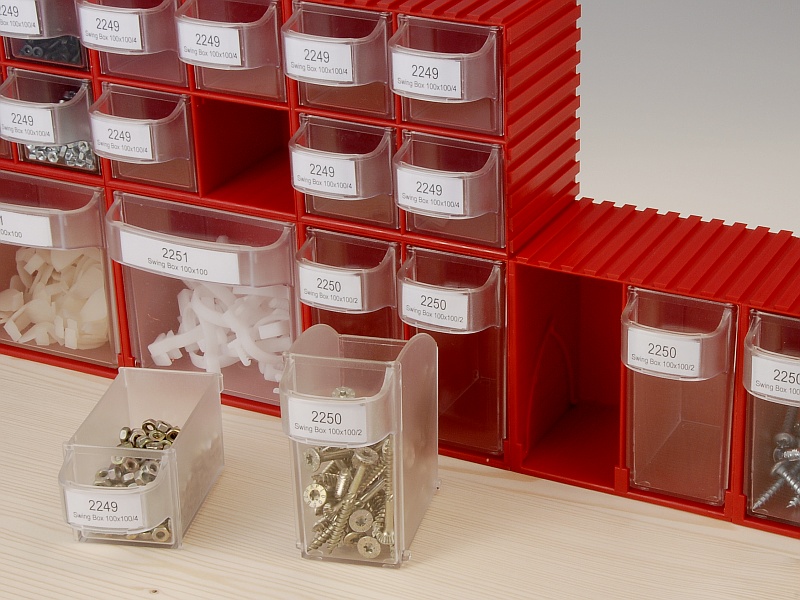Skrzynia obrotowa z jednym pojemnikiem wywrotnym przeznaczona jest do przechowywania drobnych materiałów (śruby, nakrętki, elementy elektryczne itp.). Z poszczególnych części systemu można złożyć szytą na miarę całość i w ten sposób efektywnie wykorzystać przestrzeń w magazynach, warsztatach, sklepach i zakładach montażowych. Gotowy zestaw można przymocować do stołu lub ściany. Gwarancja 2 lata.