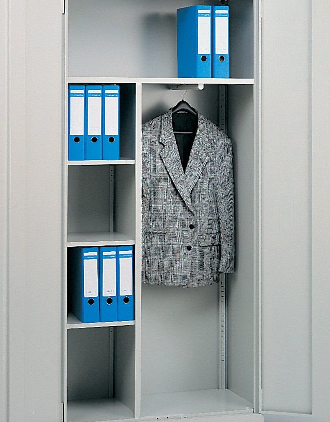 Półka z drążkiem na ubrania. Pasuje tylko do szaf roletowych Bisley Essentials typu YETB10XX (szerokość 1000 mm), szaf dwudrzwiowych Bisley Essentials typu YECB09XX (szerokość 914 mm) i zdemontowanych szaf dwudrzwiowych typu KC.