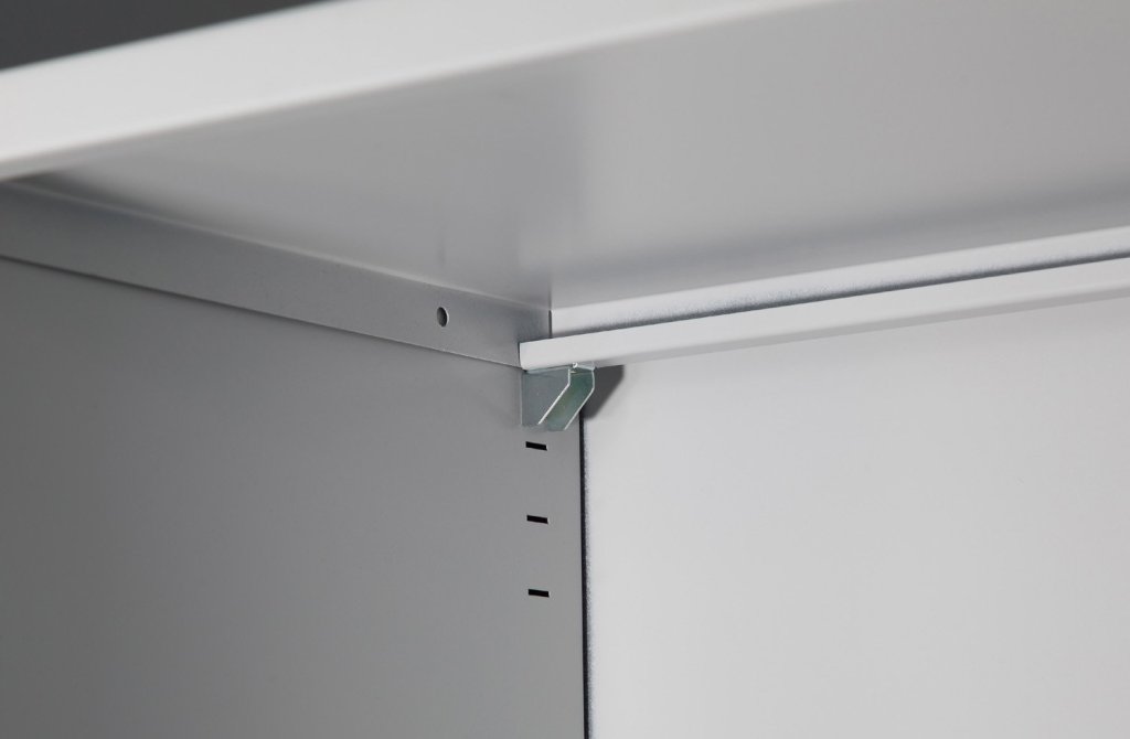 Wysuwana rama do zawieszania kieszeni. Dostarczane wraz z mechanizmem do mocowania do szafki, kolor jasnoszary RAL 7035. W przypadku szaf o szerokości 1200 mm zobacz warianty produktu, aby zapoznać się z innymi opcjami.