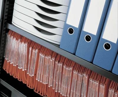 Stała ramka do zawieszania teczek z etykietą górną do szaf roletowych Bisley ET o szerokości 1000mm.