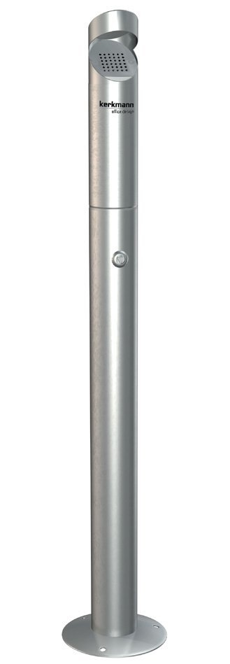 Okrągły metalowy kosz na śmieci ze stali nierdzewnej z popielniczką. Nadaje się do użytku wewnętrznego i zewnętrznego. Wyjmowany pojemnik wewnętrzny na kosz na śmieci i popielniczkę. Popielniczka zawiera drobny piasek kwarcowy. Pojemność kosza 17 l, popielniczka 2 l. Wymiary wysokość 620 mm x średnica 260 mm.