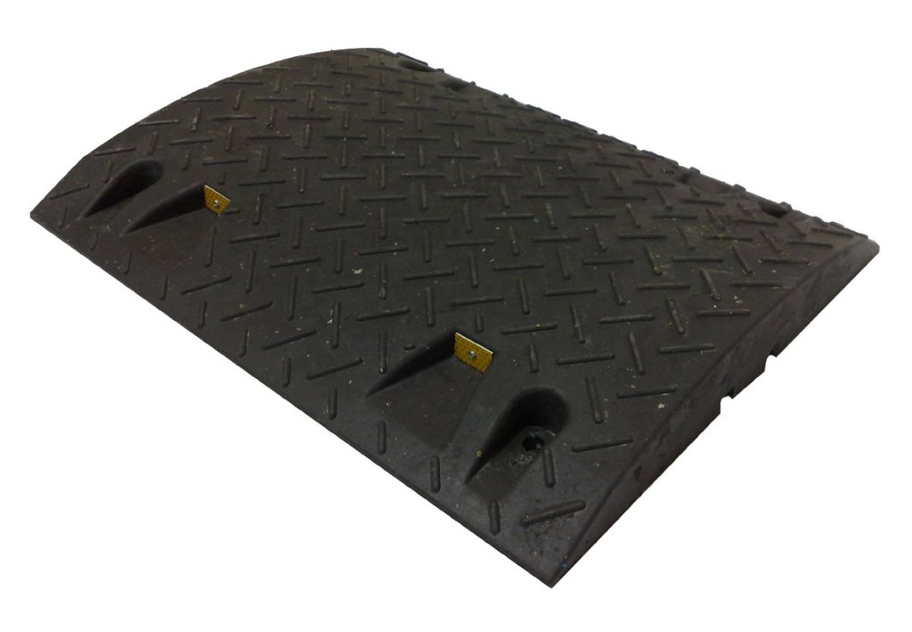 Urządzenia budowlano-ruchowe mające na celu zmniejszenie niepożądanej prędkości pojazdów lub przestrzeganie dopuszczalnych prędkości pojazdów na drogach lokalnych. Zastosowanie – drogi, parkingi, wejścia do budynków. Kolor czarny, do prędkości 30 km/h. Wykonane z trwałego materiału pochodzącego z recyklingu. Dobrze widoczny w nocy. Wysokość 30 x szerokość 500 x głębokość 430 mm.