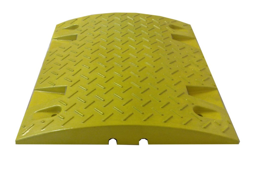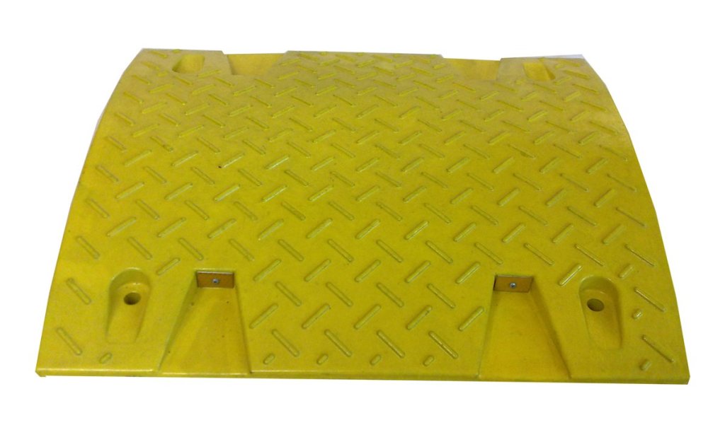 Urządzenia budowlano-ruchowe mające na celu zmniejszenie niepożądanej prędkości pojazdów lub przestrzeganie dopuszczalnych prędkości pojazdów na drogach lokalnych. Zastosowanie – drogi, parkingi, wejścia do budynków. Kolor żółty, dla prędkości 30 km/h. Wykonane z trwałego materiału pochodzącego z recyklingu. Dobrze widoczny w nocy. Wysokość 30 x szerokość 500 x głębokość 430 mm.