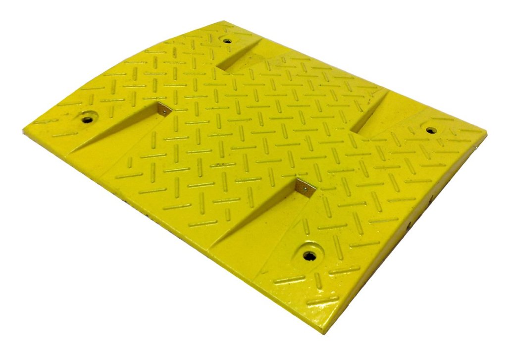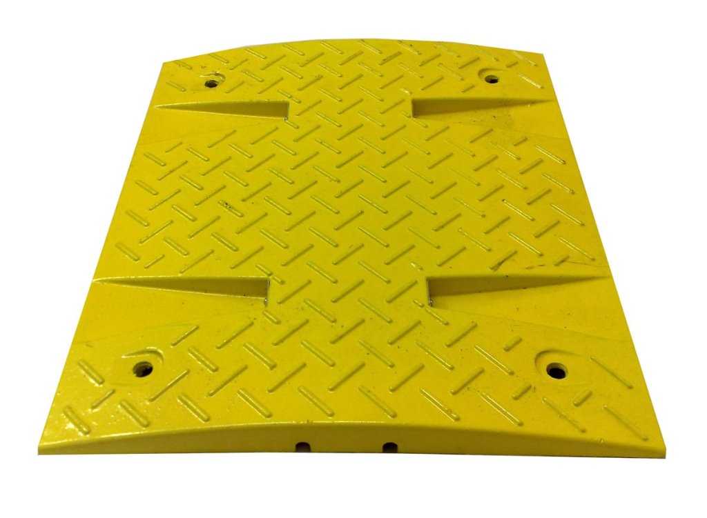Urządzenia budowlano-ruchowe mające na celu zmniejszenie niepożądanej prędkości pojazdów lub przestrzeganie dopuszczalnych prędkości pojazdów na drogach lokalnych. Zastosowanie – drogi, parkingi, wejścia do budynków. Prędkość 10 km/h, kolor żółty. Wykonane z trwałego materiału pochodzącego z recyklingu. Dobrze widoczny w nocy. Wysokość 60 x szerokość 215 x głębokość 430 mm.