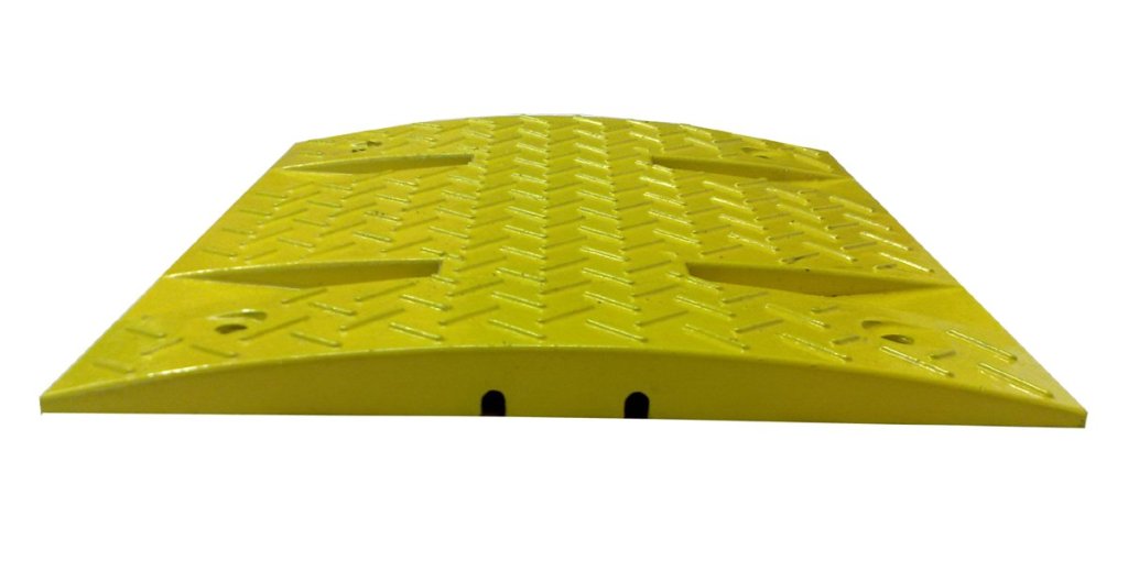 Urządzenia budowlano-ruchowe mające na celu zmniejszenie niepożądanej prędkości pojazdów lub przestrzeganie dopuszczalnych prędkości pojazdów na drogach lokalnych. Zastosowanie – drogi, parkingi, wejścia do budynków. Kolor żółty, dla prędkości 10 km/h. Wykonane z trwałego materiału pochodzącego z recyklingu. Dobrze widoczny w nocy. Wysokość 60 x szerokość 500 x głębokość 430 mm.