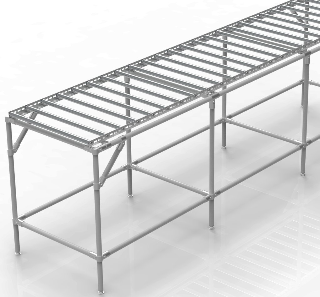 Przenośniki rolkowe stanowią idealne rozwiązanie do płynnego transportu pojemników KLT, paczek oraz innych produktów jednostkowych. Dzięki modułowej konstrukcji rurowej system można łatwo modyfikować i dostosować do konkretnych potrzeb zakładu.