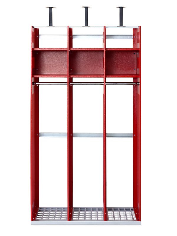 Szafy przystosowane specjalnie dla strażaków i służb ratunkowych. Połowa szafki jest otwarta, dzięki czemu odzież i sprzęt ratunkowy są natychmiast dostępne podczas przygotowań do sytuacji awaryjnej. Nogi nie są częścią szafy, można je kupić osobno w kolorze czerwonym RAL 3000 lub czarnym RAL 9005. < /p>