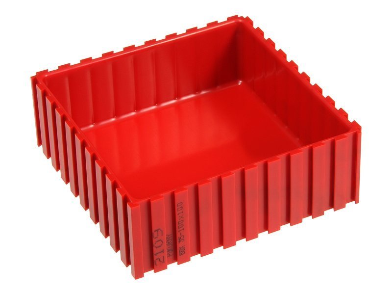 Pudełko służy do uporządkowania przestrzeni do przechowywania w szufladach, na półkach i na blatach roboczych. Poszczególne skrzynki można łączyć w zestawy za pomocą połączeń na jaskółczy ogon w dowolny zestaw. Można je łączyć ze sobą, ale także z pudełkami. Aby przechowywać wrażliwe urządzenia lub komponenty, na spodzie pudełka można umieścić podszewkę. Wymiary 35 x 102 x 102 mm.