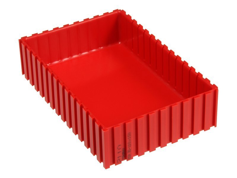 Pudełko służy do uporządkowania przestrzeni do przechowywania w szufladach, na półkach i na blatach roboczych. Poszczególne skrzynki można łączyć w zestawy za pomocą połączeń na jaskółczy ogon w dowolny zestaw. Można je łączyć ze sobą, ale także z pudełkami. Aby przechowywać wrażliwe urządzenia lub komponenty, na spodzie pudełka można umieścić podszewkę. Wymiar 35 x 602 x 102 mm. Kolor czerwony RAL 3020.