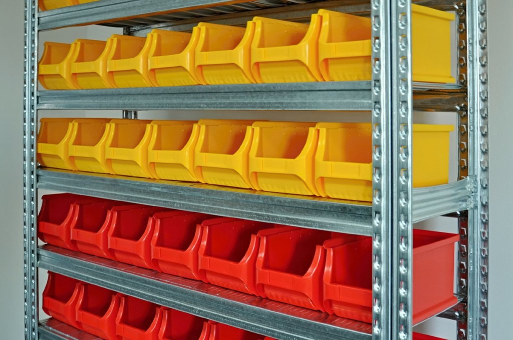 Bezśrubowy regał półkowy metalowy z plastikowymi pudełkami. 10x półek, nośność 125 kg, nośność kolumny 1100 kg. Wymiary półki wys. 1972 x szer. 1124 x gł. 330 mm. Zawiera 28x plastikowe pudełko 456210 i 35x plastikowe pudełko 456208. Gwarancja 2 lata.