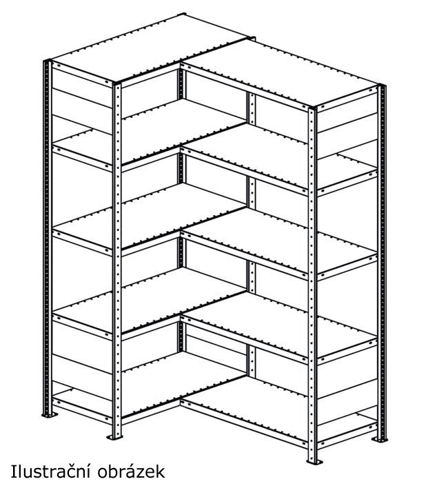 Regał metalowy narożny CLIP, ocynkowany, głębokość półki 300, 400, 500 lub 600 mm, szerokość półki 1000 mm, wysokość 2000 (10 półek), 2500 (12 półek) i 3000 mm (14 półek). Bezśrubowy, łatwy montaż. Możliwość ustawienia regałów dostawnych na dowolną długość (patrz Dokup dodatkowy). Uniwersalna konstrukcja prawa i lewa.