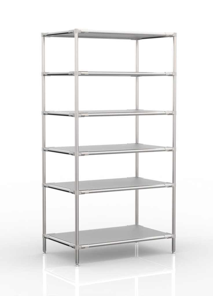 Regał wykonany z rurowego systemu modułowego z sześcioma prostymi półkami jest praktycznym pomocnikiem. Zapewnia przejrzyste pełny opis i parametry