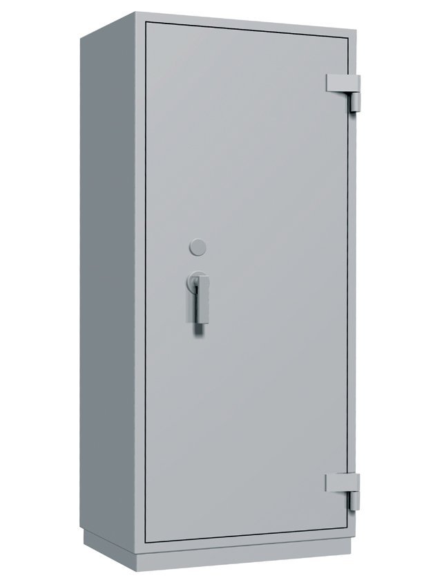 Sejf jednodrzwiowy o podwyższonej odporności ogniowej, 3 półki regulowane, zamykany na kluczyk sejfowy. Klasa bezpieczeństwa 0, przystosowana do przechowywania dokumentów z klauzulą "Poufne". Wysokość 1560 x szerokość 700 x głębokość 500 mm, waga 260 kg, kolor jasnoszary RAL 7035.