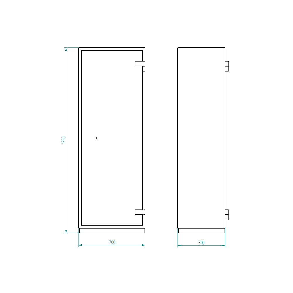 • wysokość 1950 x szerokość 700 x głębokość 550 mm