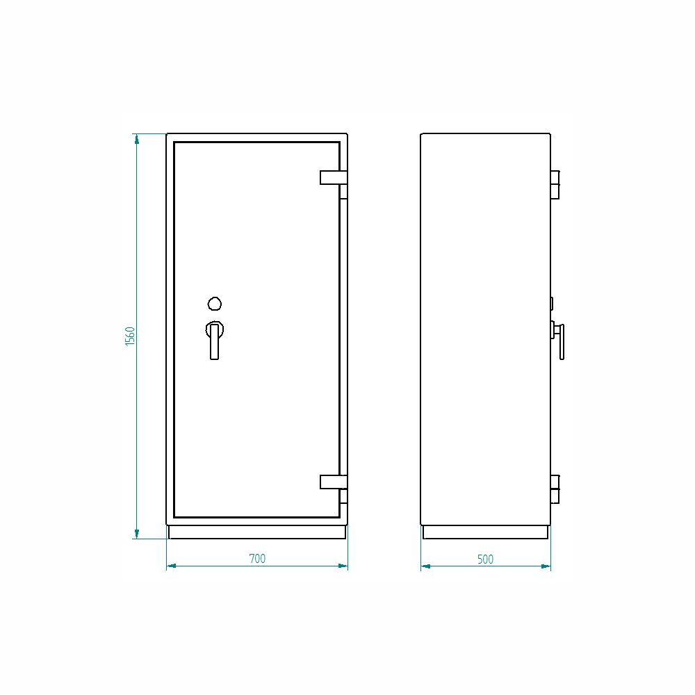 • wysokość 1560 x szerokość 700 x głębokość 500 mm