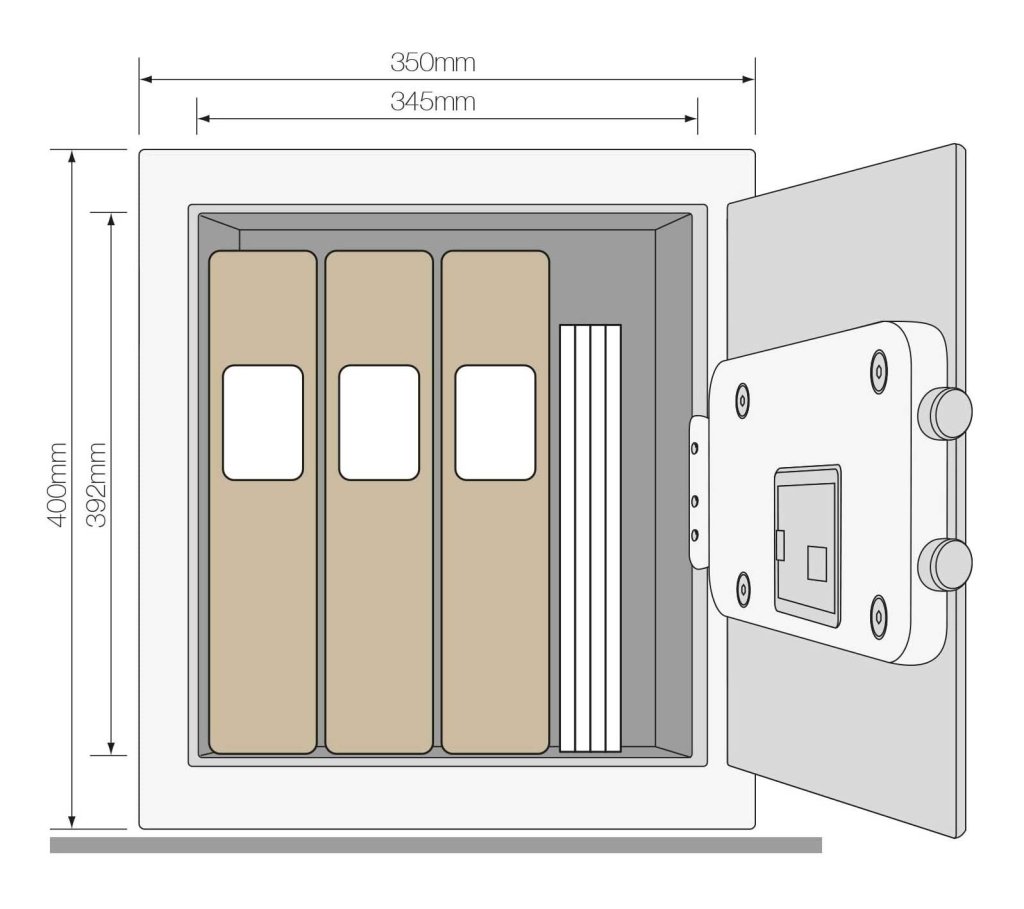 Sejf meblowy Yale Value Medium, zamek elektroniczny, bez wyświetlacza, zamek dwustronny dźwigniowy. Wysokość 250 x szerokość 350 x głębokość 250 mm, wymiary wewnętrzne 240 x 340 x 200 mm.