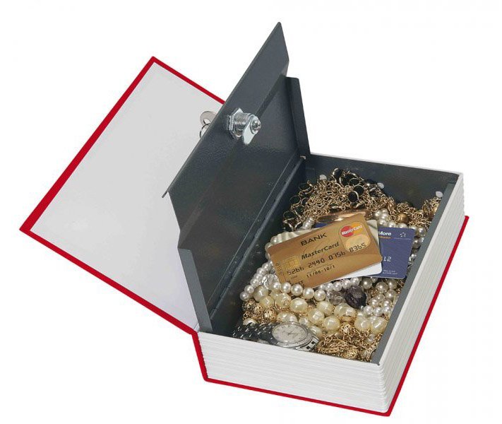 - zamykana kasetka na cenne przedmioty - imitująca książkę
