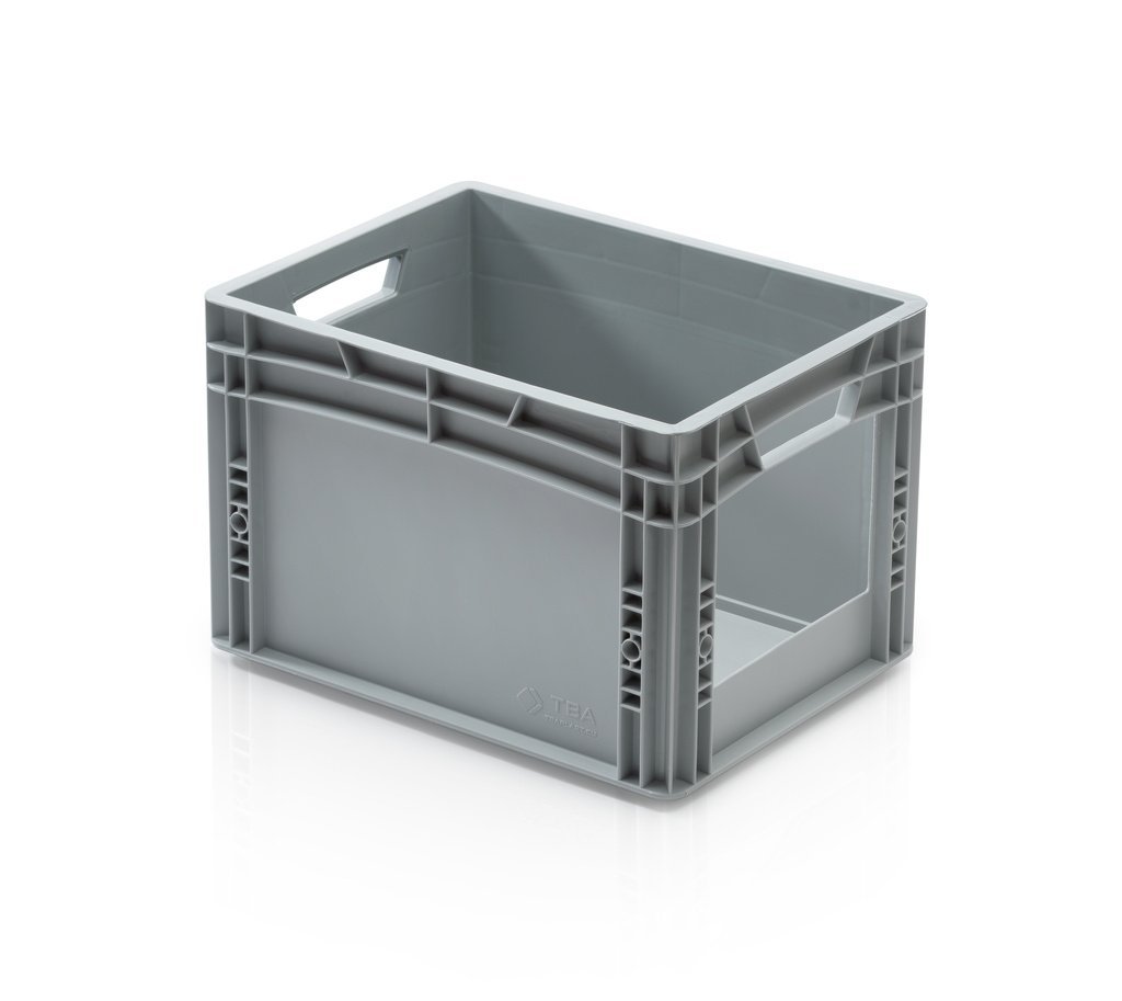 Skrzynia Euro jest higieniczna, łatwa do układania w stosy i może być używana do transportu i przechowywania. Odporny na zimno i ciepło kontaktowe, na kwasy i zasady. Wymiary całkowite (wys. x szer. x gł.) w mm 270 x 400 x 300. Pojemność 26 l. Nadaje się do przejrzystego przechowywania małych części dzięki okienku do przechowywania.