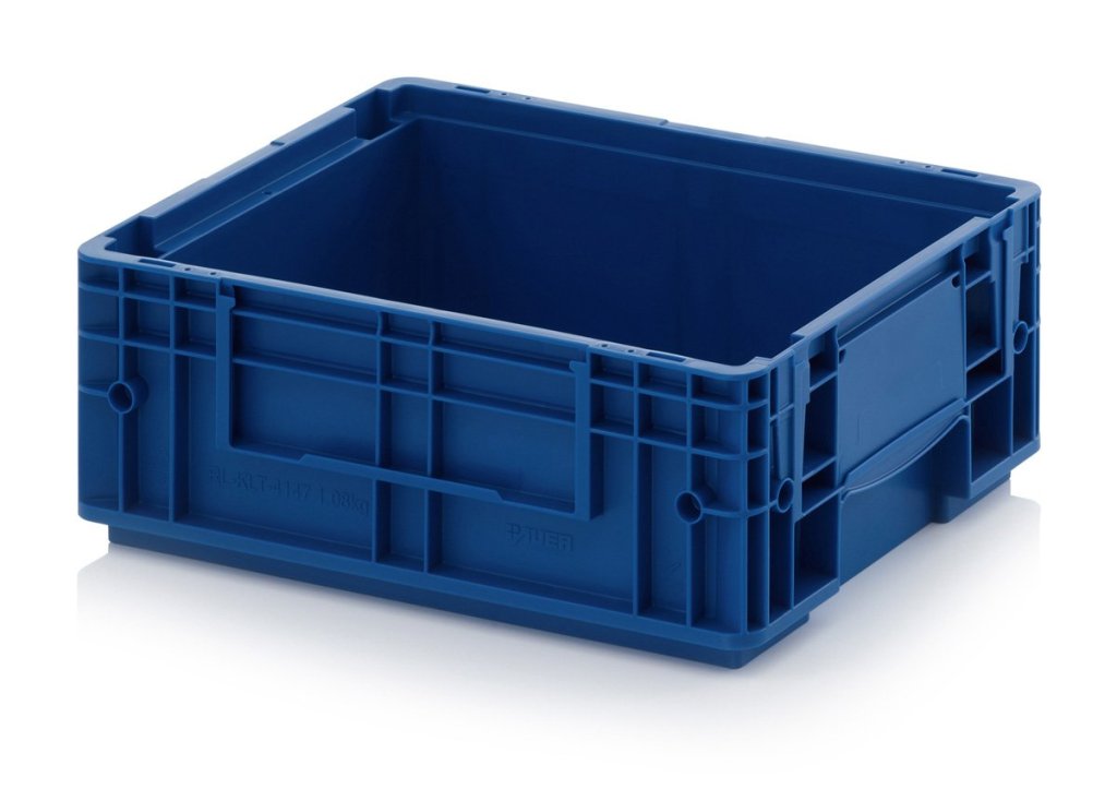 Skrzynia R-KLT wykonana z wysokiej jakości polipropylenu odpornego na oleje, tłuszcze oraz większość kwasów i zasad. Stabilność termiczna od -20° do 100° C, kolor niebieski RAL 5003. Wymiary wys. 147 x szer. 200 x gł. 300 mm. Gładkie dno, nośność skrzyni 20 kg, maks. ładowność 400 kg.