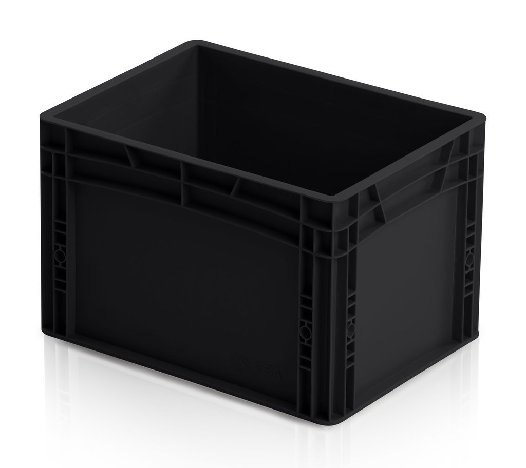 Skrzynię ESD Euro można łatwo układać w stosy. Zapobiega tworzeniu się ładunków elektrostatycznych. specyfikacja opór przepływu / opór powierzchniowy: 104 < 1010Ohm cm. Wymiary całkowite (wys. x szer. x gł.) w mm 270 x 400 x 300. Pojemność 26 l. Pełny uchwyt.