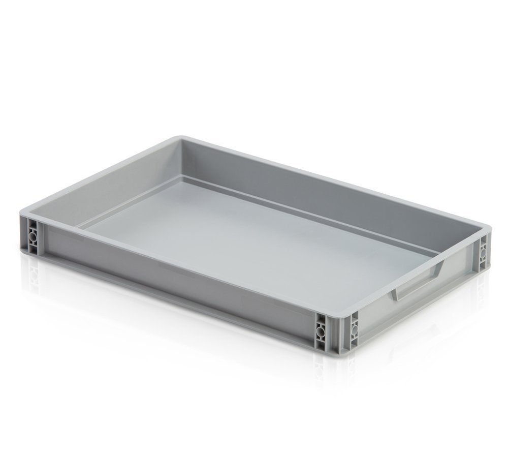 Skrzynia Euro jest higieniczna, łatwa do układania w stosy i może być używana do transportu i przechowywania. Odporny na zimno i ciepło kontaktowe, na kwasy i zasady. Wymiary całkowite (wys. x szer. x gł.) w mm 75 x 600 x 400. Pojemność 15 l. Pełny uchwyt.