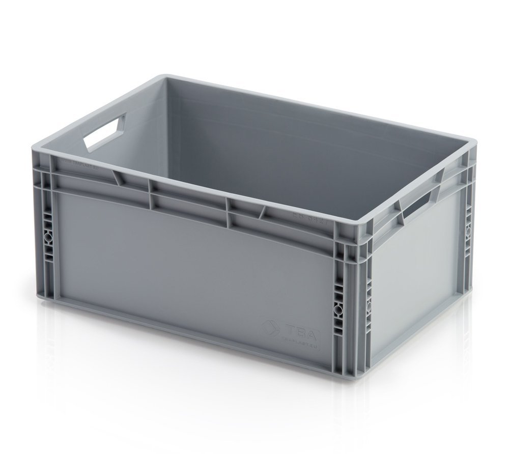 Skrzynia Euro jest higieniczna, łatwa do układania w stosy i może być używana do transportu i przechowywania. Odporny na zimno i ciepło kontaktowe, na kwasy i zasady. Wymiary całkowite (wys. x szer. x gł.) w mm 270 x 600 x 400. Pojemność 56 l. Do wyboru uchwyt pełny lub otwarty.