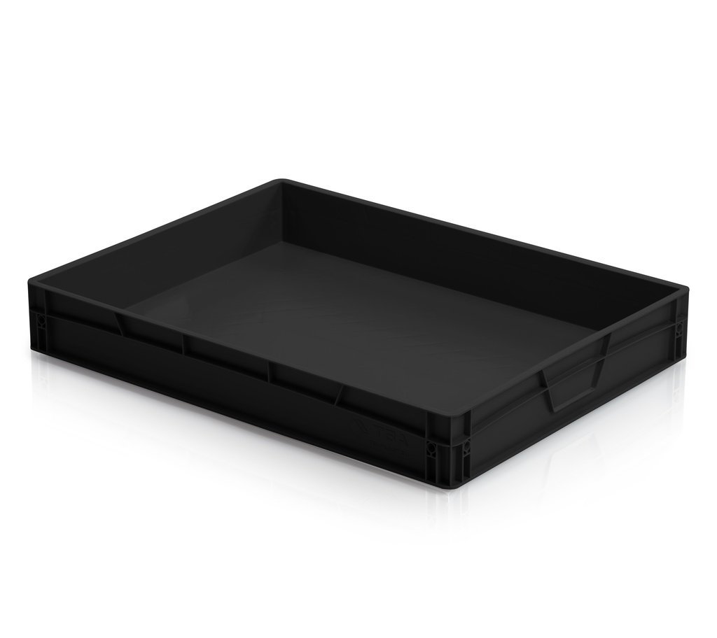 Skrzynię ESD Euro można łatwo układać w stosy. Zapobiega tworzeniu się ładunków elektrostatycznych. specyfikacja opór przepływu / opór powierzchniowy: 104 < 1010Ohm cm. Wymiary całkowite (wys. x szer. x głęb.) w mm 120 x 800 x 600. Pojemność 45 l. Pełny uchwyt.