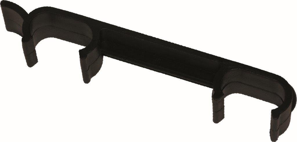 Łącznik do mocowania krzeseł w rzędzie, wielopozycyjny, wersja z czarnego tworzywa sztucznego.