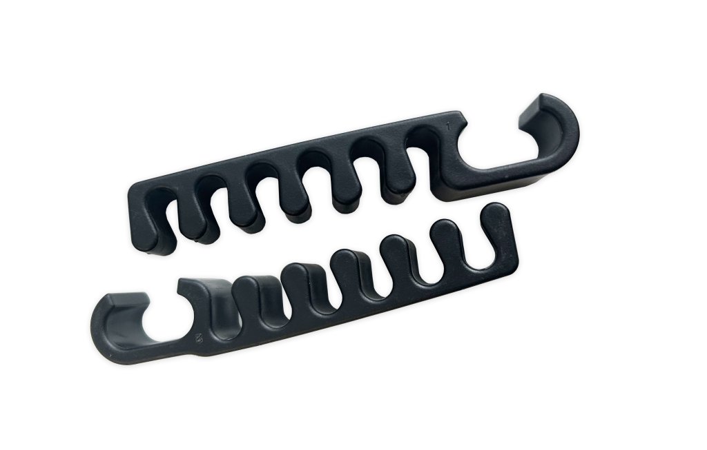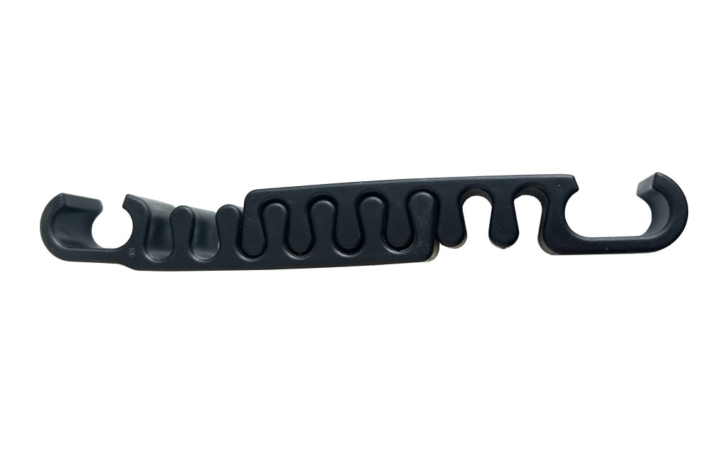 Łącznik do mocowania krzeseł w rzędzie, wielopozycyjny, wersja z czarnego tworzywa sztucznego.