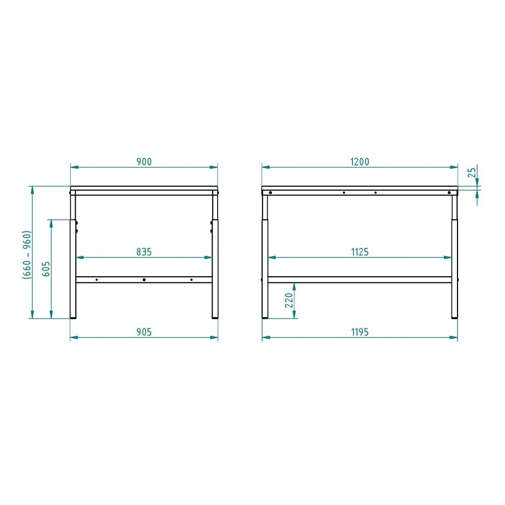Konstrukcja półki regulowanej o głębokości 300 mm dla szerokości stołu 1200 mm. Bez półki.