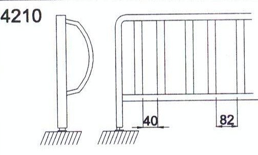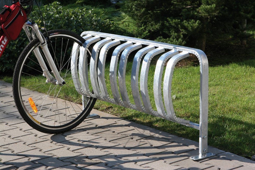 Stojak na 5 rowerów w dwóch wariantach - do wbetonowania w ziemię lub do zakotwienia. Powierzchnia cynkowana ogniowo – długa żywotność stojaka. Szerokość stojaka 1250 mm, waga 14 kg, szerokość stojaka 82 mm.