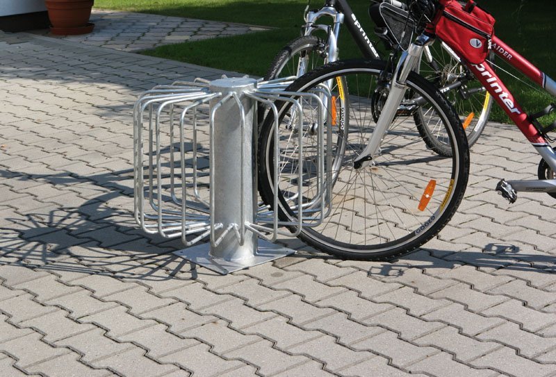 Stojak na rowery nadaje się do wszystkich typów rowerów ze wszystkimi standardowymi rozmiarami opon. Części chwytne wykonane są z profili stalowych odpornych nawet na nieostrożne obchodzenie się z nimi. Nadaje się do umieszczenia w przestrzeni i do większej liczby rowerów - do 10.