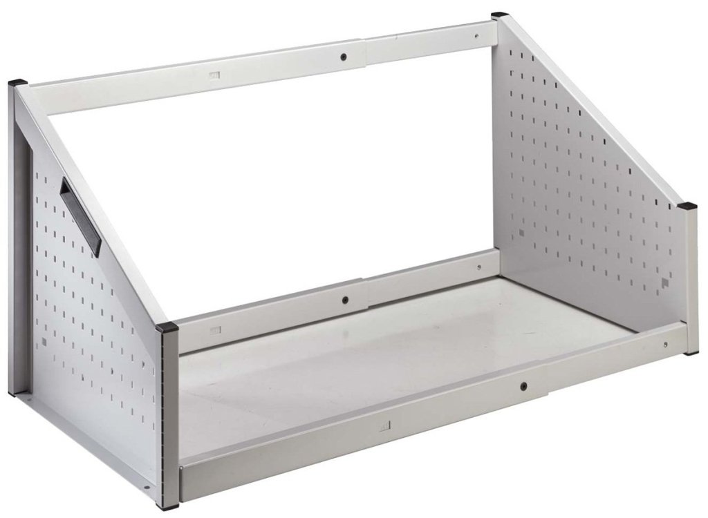 Podstawa stołowa o wymiarach 54 x 27D. Podstawowa konstrukcja stojaka składa się ze skręcanych, wzmocnionych, spawanych blach stalowych, ściany boczne są perforowane na wieszaki, ramy narzędziowe i szuflady.