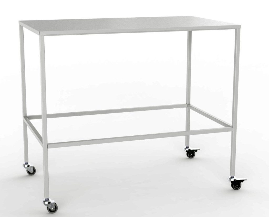 Stół chirurgiczny wykonany jest z blachy o grubości 0,8 mm. Wysokość 880 mm, szerokość 1400 mm, głębokość 600 mm. Obszerny blat pozwala na przechowywanie dużej ilości urządzeń i narzędzi. Wygodną obsługę zapewniają 4 obrotowe koła, w tym 2 z hamulcem.
