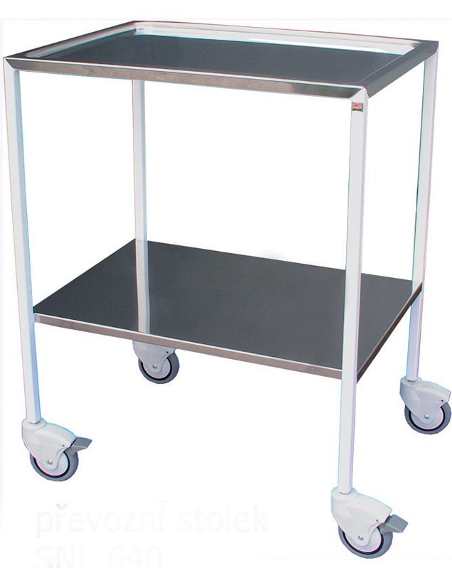 Stół mobilny wykonany jest z malowanych profili stalowych. Powierzchnie magazynowe składają się z dwóch płyt ze stali nierdzewnej, natomiast górna płyta jest prasowana z zaokrąglonymi narożnikami. Stół wyposażony jest w dwa koła hamowane i dwa niehamowane o średnicy 75 mm. Służy do przechowywania i dostarczania narzędzi chirurgicznych i materiałów medycznych.