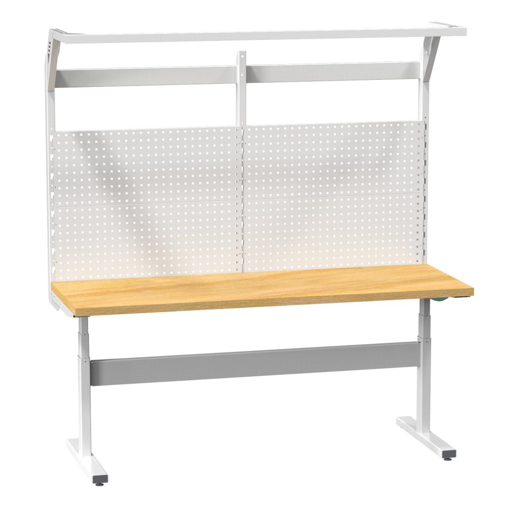 Stół ERGO regulowany elektrycznie z przedłużeniem, wysokość 660 - 1100 mm, szerokość 2000 mm, głębokość blatu 700 mm. Stół wyróżnia się solidną ramą zapewniającą absolutną sztywność, maksymalną nośność i stabilność miejsca pracy. Blat z płyty laminowanej o grubości 38 mm.