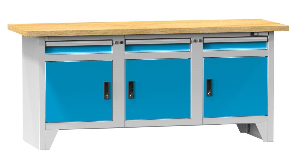 Stół warsztatowy, wymiary płyty 2000 x 700 x 40 mm, wymiary korpusu 1796 x 600 x 840 mm. Łączenie blatu buk o grubości 40 mm lub buk multipleks (oznaczenie M - fornir bukowy warstwowy) - grubość 40 mm. Nośność stołu 800 kg.