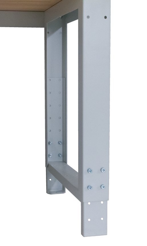 Standardowy stół warsztatowy regulowany, szerokość 2000, wysokość 655 - 1005, głębokość 700 mm. Nośność stołu 500 kg, kolor konstrukcji jasnoszary RAL 7035.