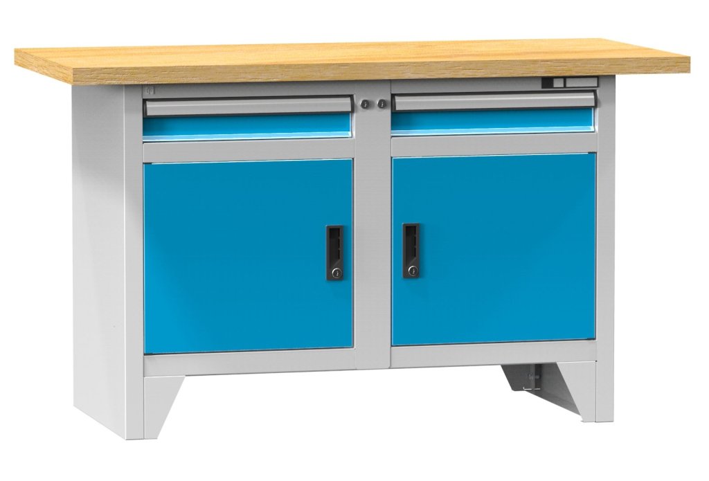 Stół warsztatowy na narzędzia, wymiary płyty 1500 x 700 x 40 mm, wymiary korpusu 1198 x 600 x 840 mm. Blat bukowy o grubości 40 mm lub buk multipleks (oznaczenie M - fornir bukowy warstwowy) - grubość 40 mm. Nośność stołu 800 kg.