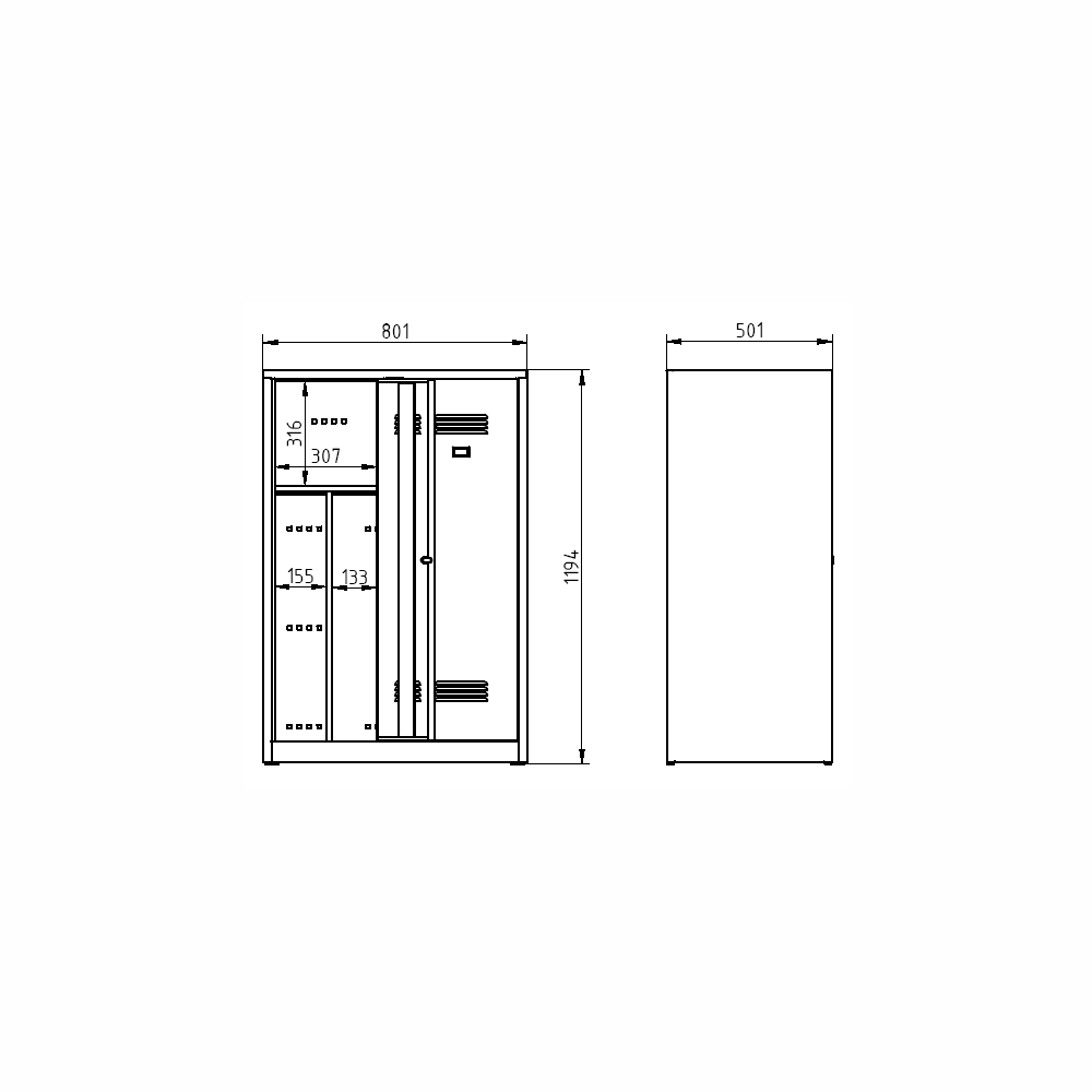 Dostawka do szafy o szerokości 800 mm. Wysokość 456 x szerokość 800 x głębokość 456 mm. Dwudrzwiowe. Kolor korpusu RAL 7035 jasnoszary.