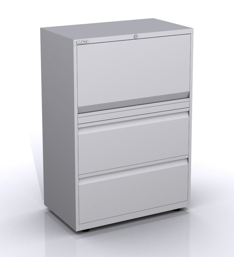 Szafka na dokumenty SystemFile z drzwiami na zawiasach i trzema szufladami na teczki i dokumenty w formacie A4. Wysokość 1795 - 1819, szerokość 1000, głębokość 470 mm.