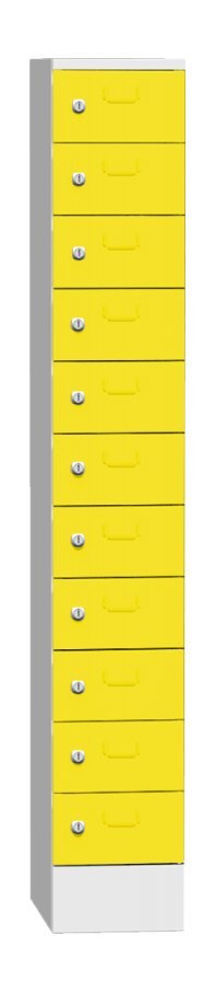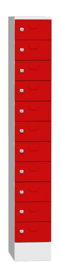 Szafka przeznaczona jest do sortowania poczty, dokumentów lub innych wartościowych przedmiotów. Oddzielnie zamykane skrzynki na cyl. zamknięcie na zamek lub kłódkę. Wysokość 1950 x szerokość 300 x głębokość 500 mm, 11 przegródek z narzutą. Kolor korpusu jasnoszary RAL 7035.