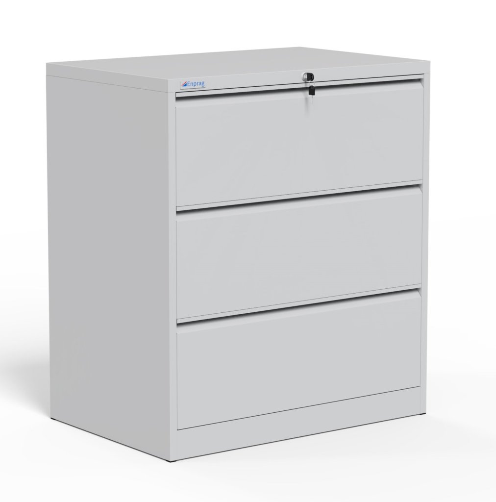Szafka na dokumenty do samodzielnego montażu z trzema szufladami, wykonana z blachy stalowej o grubości 0,6 mm. Wysokość 1015 x szerokość 400 x głębokość 600 mm, zamek centralny, pełny wysuw szuflad. Na dokumenty lub segregatory wiszące formatu A4. Korpus w kolorze szarym lub ciemnoszarym, szuflady białe.