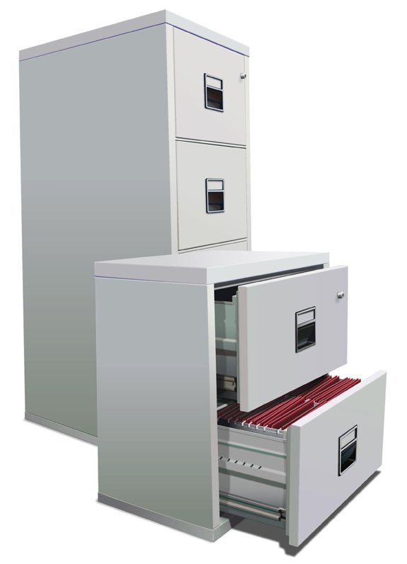 Szafa kartotekowa ognioodporna Fireking typu UF-2. Wysokość 759 x szerokość 539 x głębokość 800/813 mm. Badanie odporności ogniowej 60 minut, dla typu UF-2-2H 120 minut. Kolor jasnoszary RAL 7035.