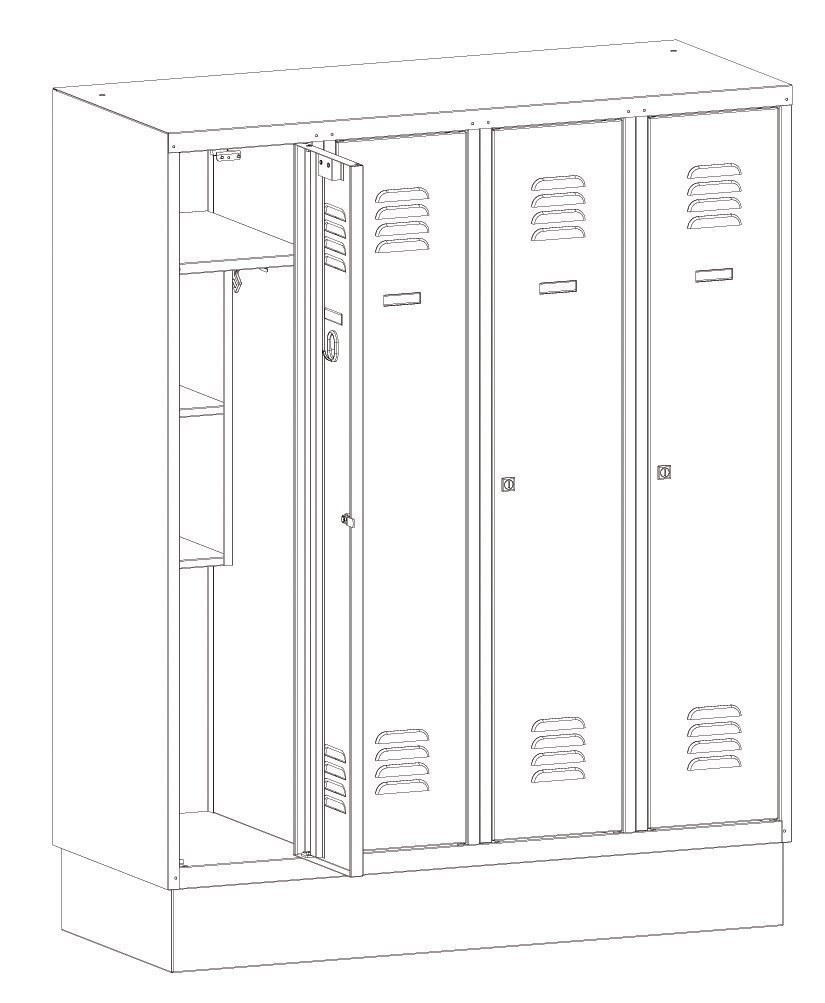 Trzydrzwiowa szafa metalowa o obniżonej wysokości z nowoczesnym systemem wentylacji. Odpowiedni Wysokość 1450 x szerokość 900 x głębokość 500 mm. Samoprzylepna plakietka z imieniem na drzwiach. Do wyboru 16 odcieni kolorystycznych wliczonych w cenę bez dopłaty. Różne rodzaje zamków.