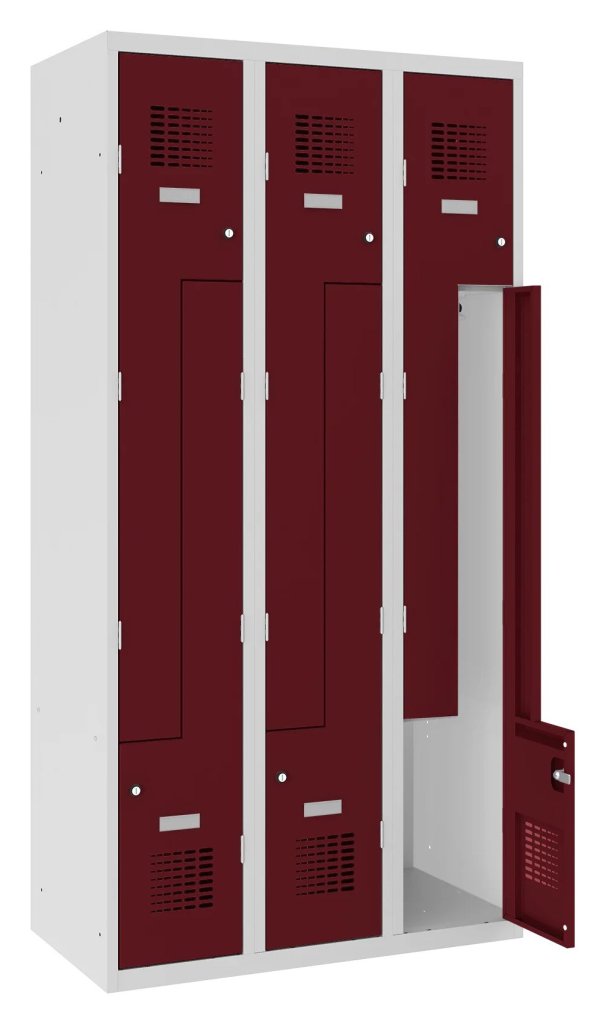 Metalowa szafa sześciodrzwiowa o konstrukcji spawanej i nowoczesnej konstrukcji systemu wentylacji. Idealny do małych pomieszczeń. Wysokość 1800 x szerokość 900 x głębokość 500 mm. Standardowe wyposażenie szafki: drążek z haczykami, plakietka samoprzylepna. Do wyboru 16 odcieni kolorów. Zamek bębenkowy lub zamknięcie na kłódkę.