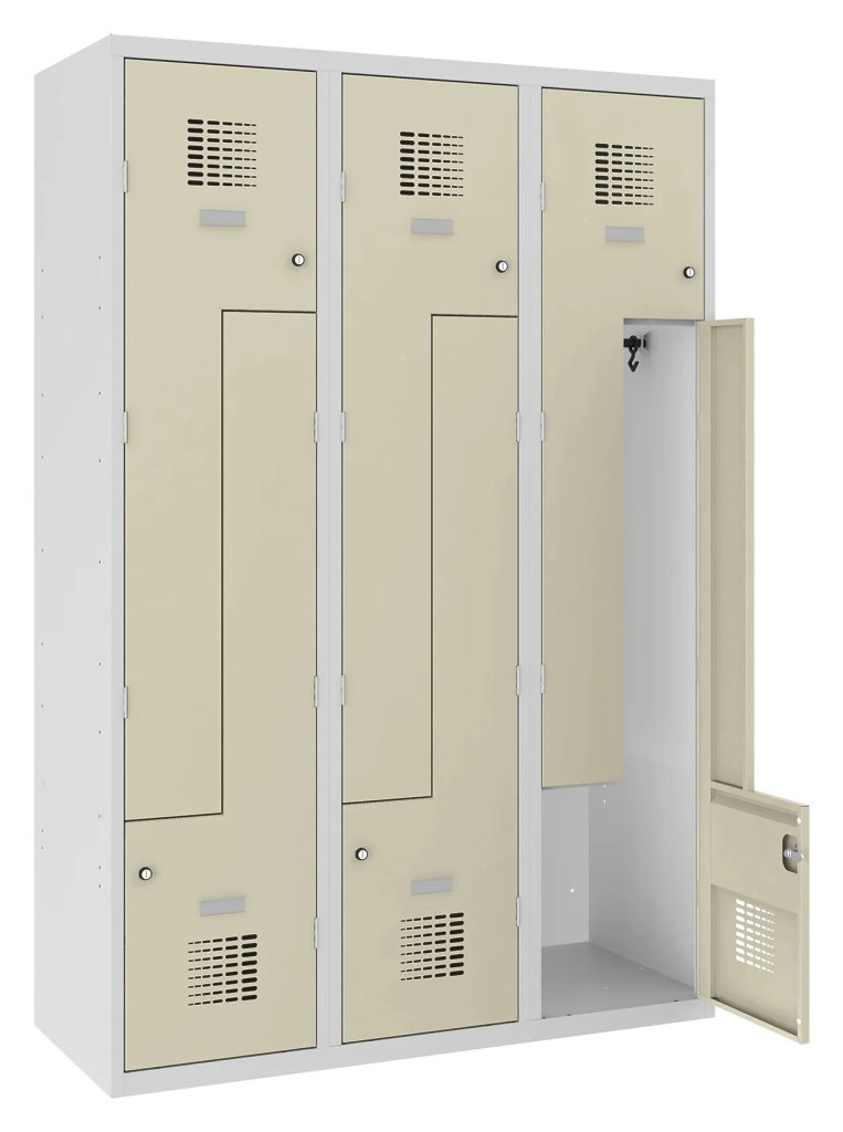 Szafa sześciodrzwiowa o konstrukcji spawanej i nowoczesnej konstrukcji systemu wentylacji. Idealny do małych pomieszczeń. Wysokość 1800 x szerokość 1200 x głębokość 500 mm. Standardowe wyposażenie szafki: drążek z haczykami, plakietka samoprzylepna. Do wyboru 16 odcieni kolorów. Zamek bębenkowy lub zamknięcie na kłódkę.