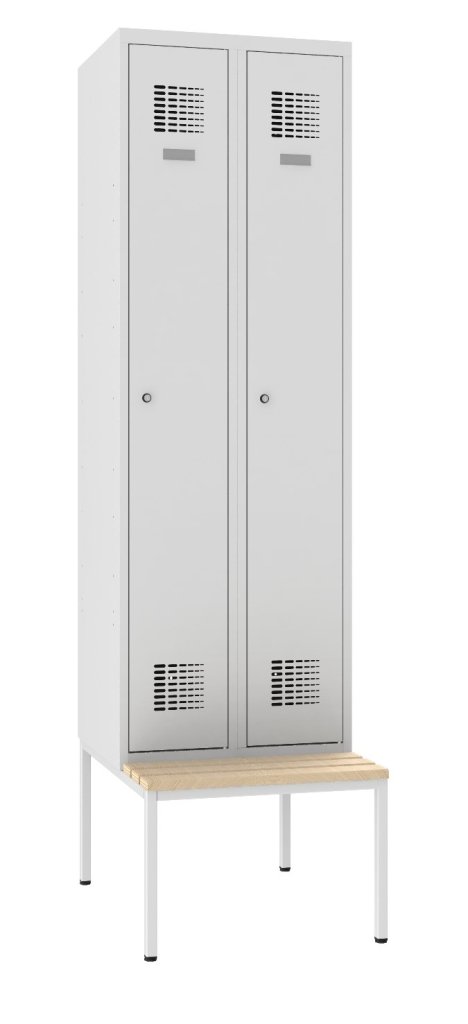 Dwudrzwiowa szafa z ławką, spawana z nowoczesną konstrukcją systemu wentylacji. Wysokość 2190 x szerokość 600 x głębokość 500 mm. pełny opis i parametry