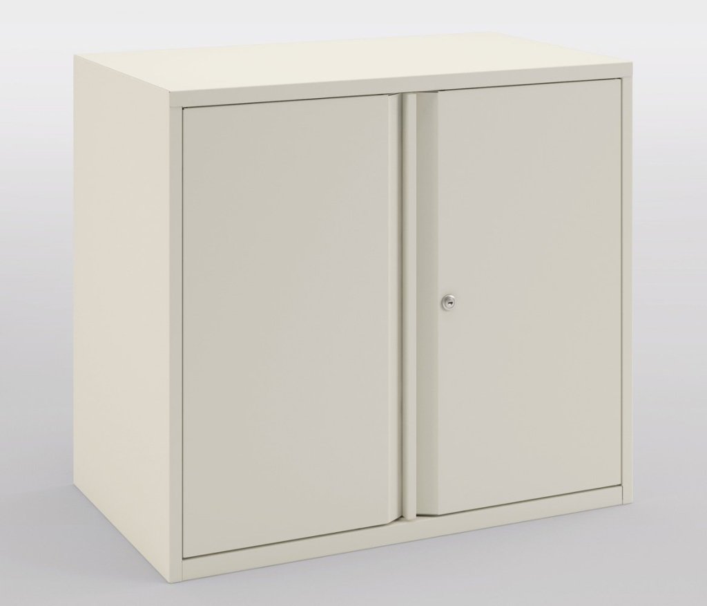 Szafa dwudrzwiowa z kolekcji Bisley Essentials. Wysokość 718 - 733 x szerokość 1000 x głębokość 470 mm, 1x regulowana półka. Różne kolory, nóżki rektyfikacyjne do wyrównywania nierówności podłoża, możliwość zastosowania innych akcesoriów. Wysokość odpowiednia pod blatem. Twoje biuro można następnie uzupełnić o inne produkty z tej kolekcji w tych samych modułach projektowych i wymiarowych.